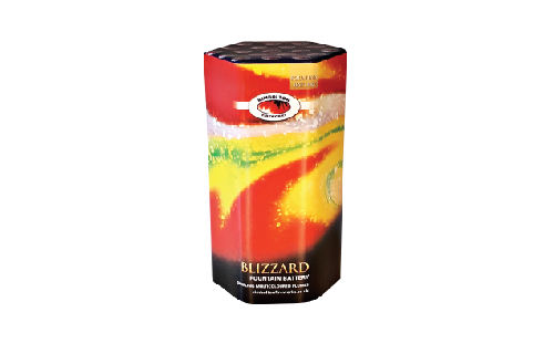 Spray fountain of red, lemon and blue, silver chrysanthemum to yellow and green with spike flower red and silver then titanium flower red and green finishing with titanium chrysanthemum, yellow and purple. Excellent fountain and a great duration too!
