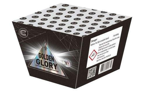 A 30-shot fanned cake, this miniature finale packs a punch with dazzling golden breaks.