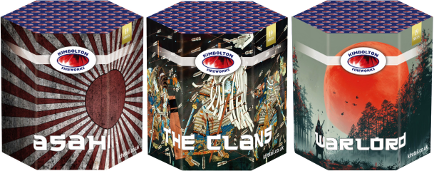 Rising Sun Pack by Kimbolton Fireworks has been upgraded for 2024. The pack includes 3 x 19 shot 30mm cakes called The Clans, Asahi and Warlord (3 types) – better effects and longer duration!