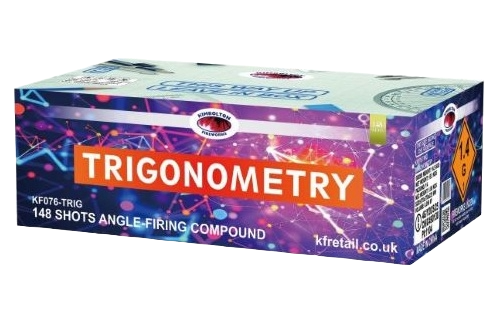 Trigonometry is a 148-shot compound that’s well-paced, bursting with bright colors and a unique angled firing pattern. It’s a top-quality piece with an impressive duration of about a minute and a half.